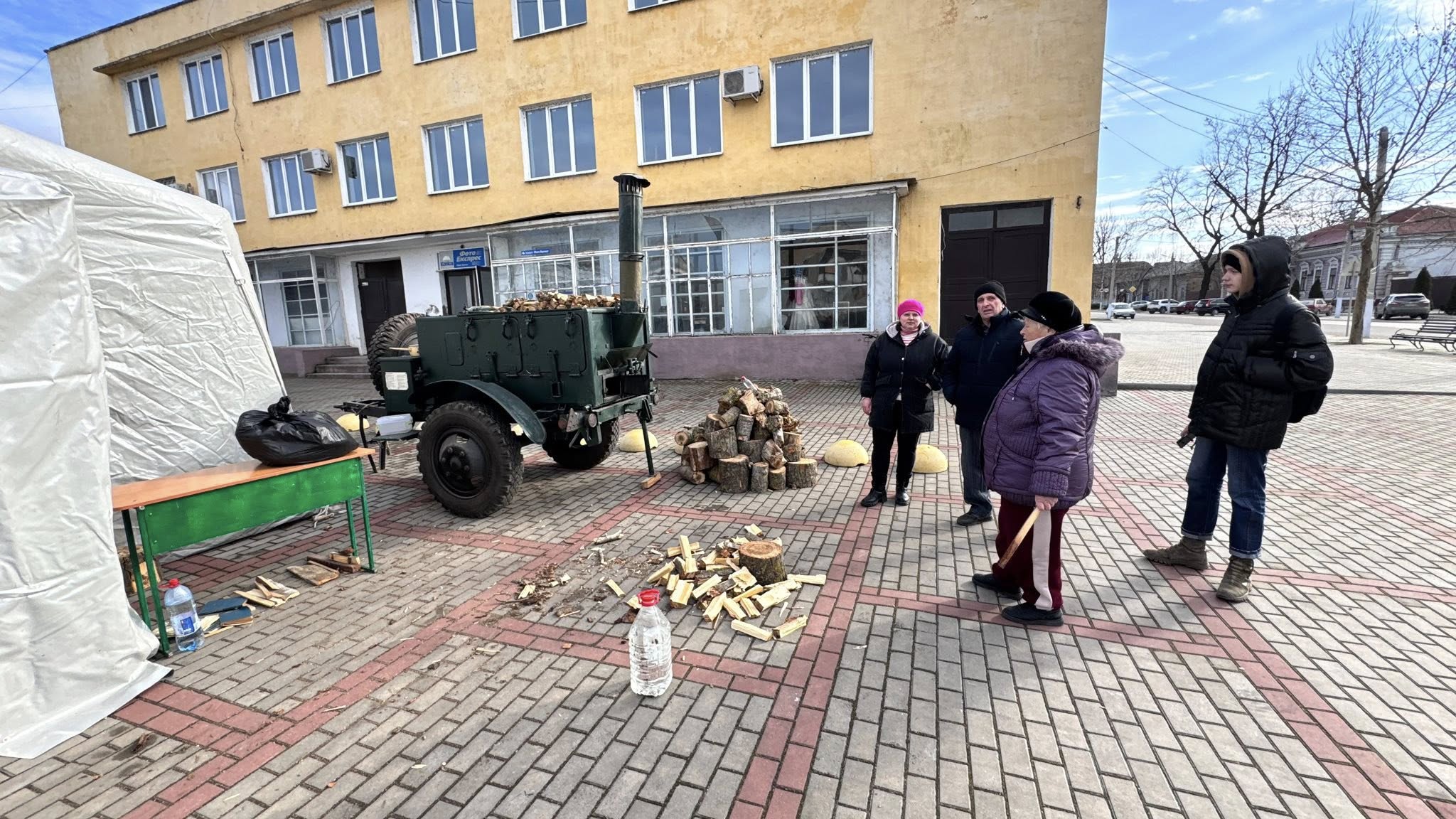 Працюючи цілий день просто неба, шкільні кухарі допомагають жителям міста пережити ці складні дні. Вони готують та пригощають громадян гарячою, смачною їжою, напоями, які в умовах відключення електроенергії складно приготувати вдома без альтернативних джерел.