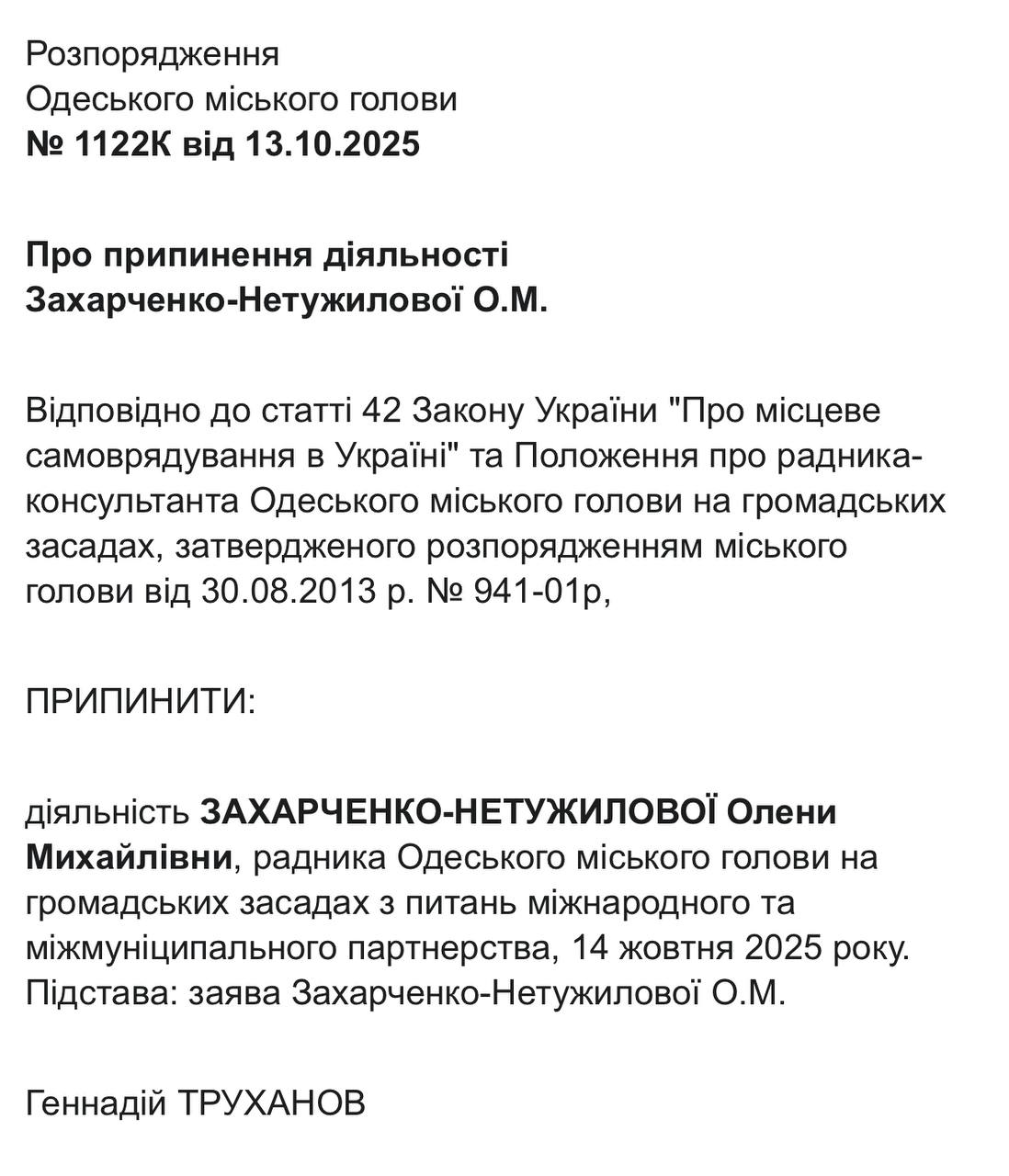 Таким чином, після кадрових змін у міській раді діяльність усіх радників Геннадія Труханова офіційно завершена.